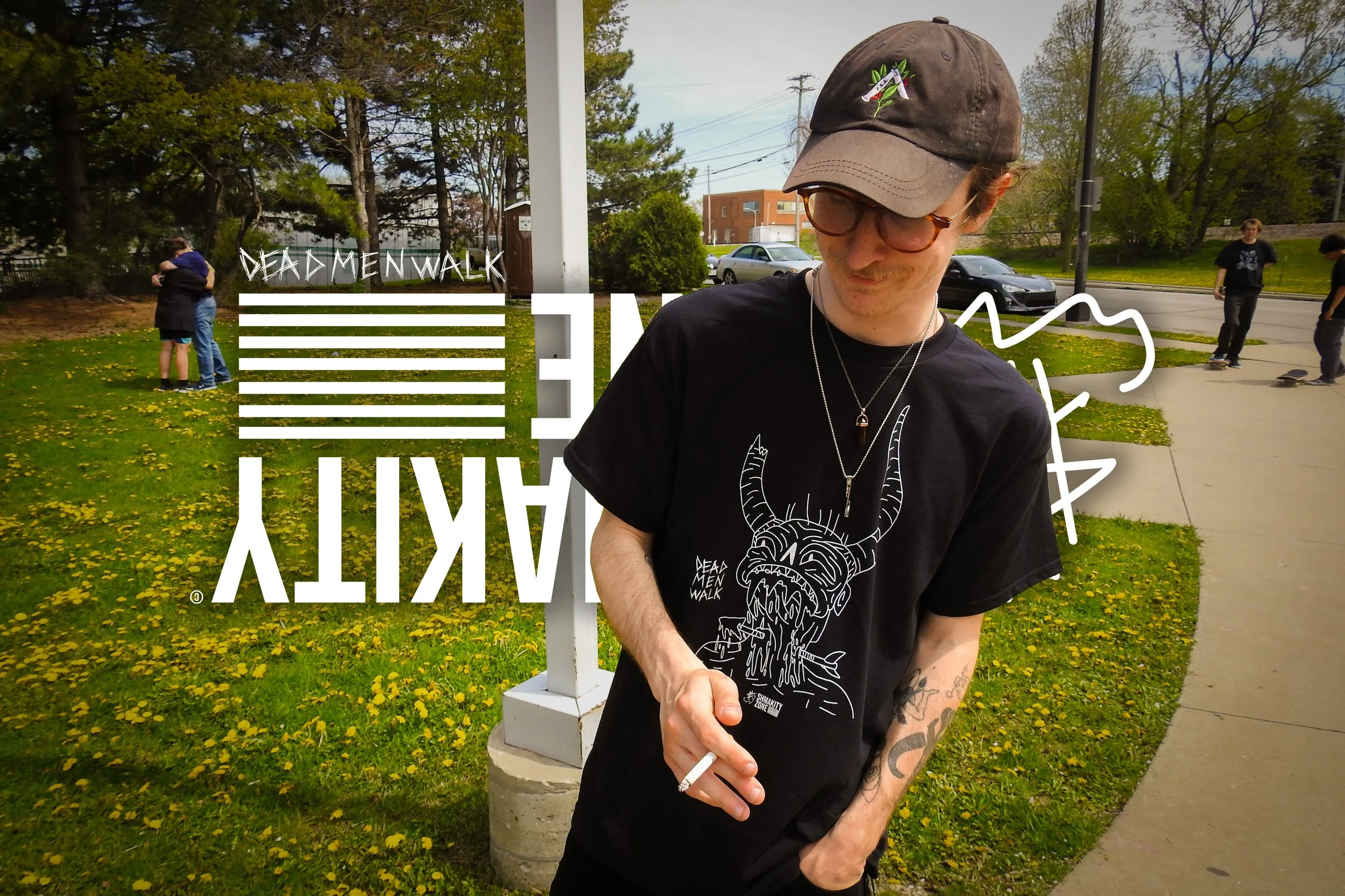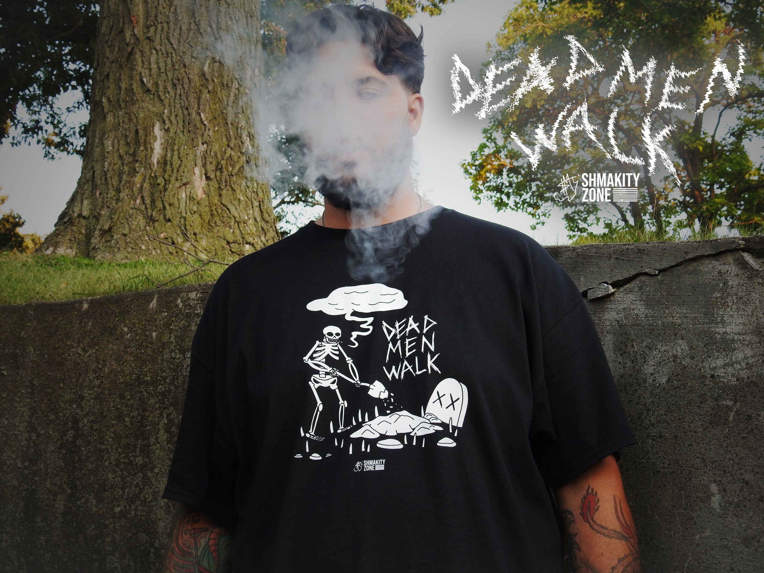 DEAD MEN WALK is a small clothing brand I created that represents skate culture and counter-culture aesthetics. This is an ongoing project that encompasses creating clothing designs (and other products), making promotional materials such as skate edits, poster advertisements, and catalogs for each drop, and actively selling products on my other website: shmakity.com.
